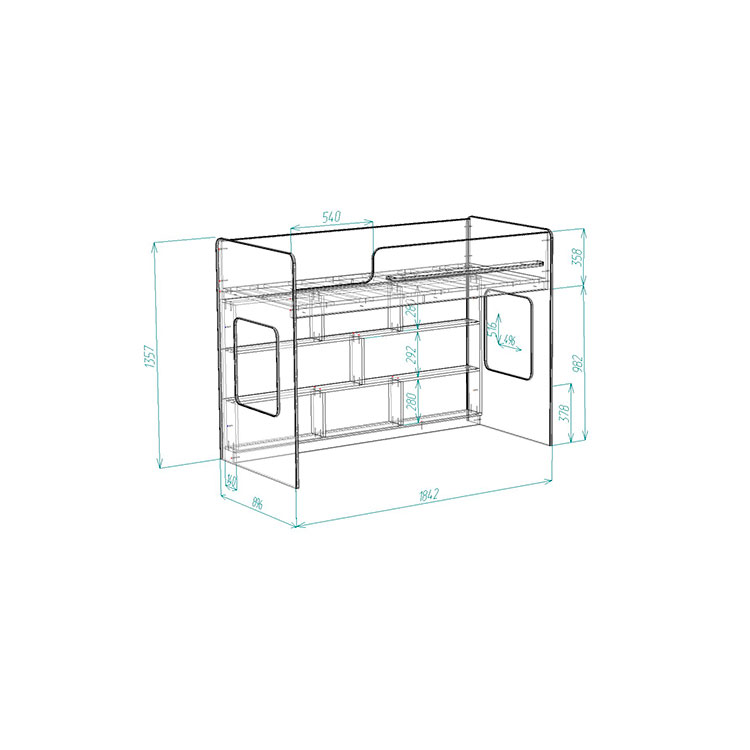 Высота обеих кроватей – всего 1350мм.Удобно - взрослый может заправить кровать,не забираясь на второй ярус!Второй ярус на уровне роста взрослого человека – гарантия свежего воздуха для ребенка.